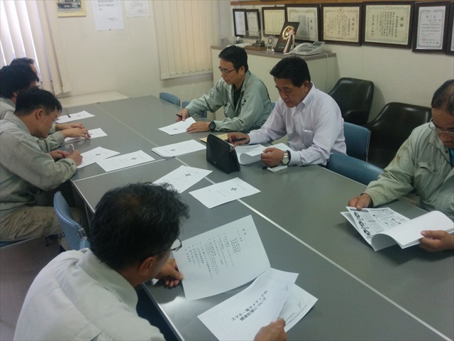 ブログ 2016.10.21 安全パトロール安全会議実施2016年10月 毎日の作業を安全に 中谷建材株式会社では天川工場内、本社内、工事現場などを月に一度安全作業確認のためパトロールを行っています。 本日のパトロールは作業後の確認を行いました。 同日、天川工場で安全会議を行いパトロール報告や安全作業についてのミーティングを行います。