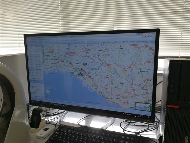 その位置情報を生産及び配車を行う「天川工場」に情報を集約し、1画面の中に全18台の位置情報を表示しました。