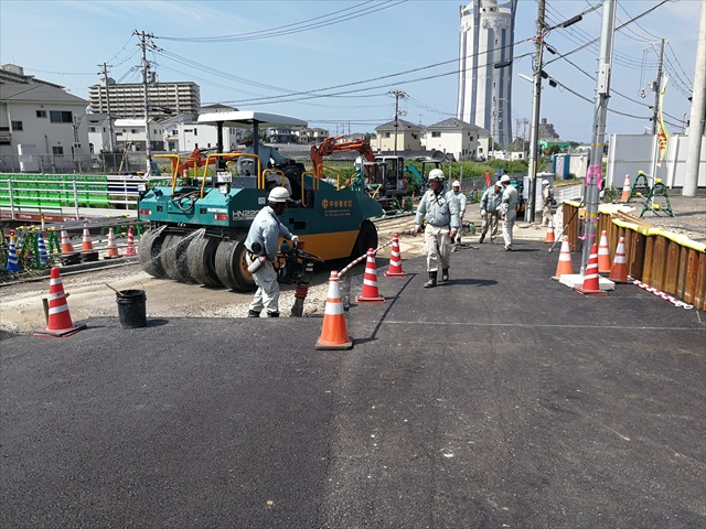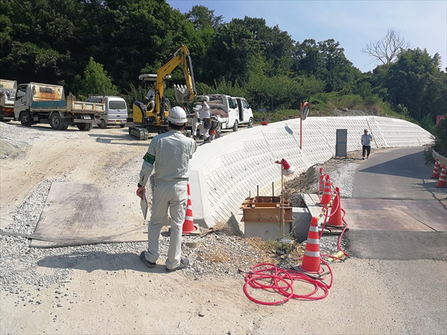 連日の暑さの中、作業現場では全員が気を抜くことなく作業しています。 お互いが注意しながら仕事に取り組んでいます。