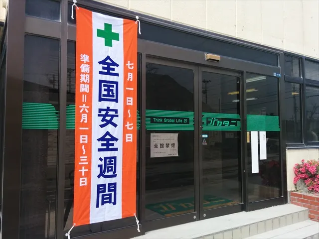 お知らせ 2014.06.02 本社 全国安全週間のぼり設置 全国安全週間 準備期間 全国安全週間の準備期間に入りました。 毎年7月1日から7日まで厚生労働省が全国安全週間を実施します。 社員全員が安全第一に作業するよう心がけています。