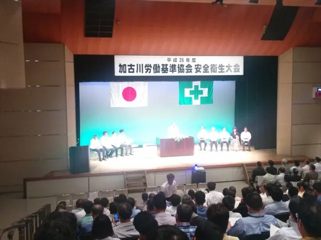 ブログ 2014.09.20 加古川労働基準協会 安全衛生大会 参加 加古川労働基準協会 安全衛生大会に参加 主催:加古川労働基準協会の安全衛生大会に弊社から2名参加しました。 優良事業場表彰や奥村幸治氏の特別講習が行われました。