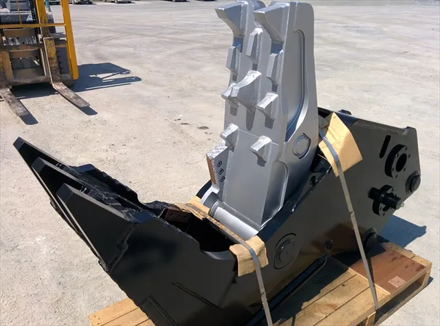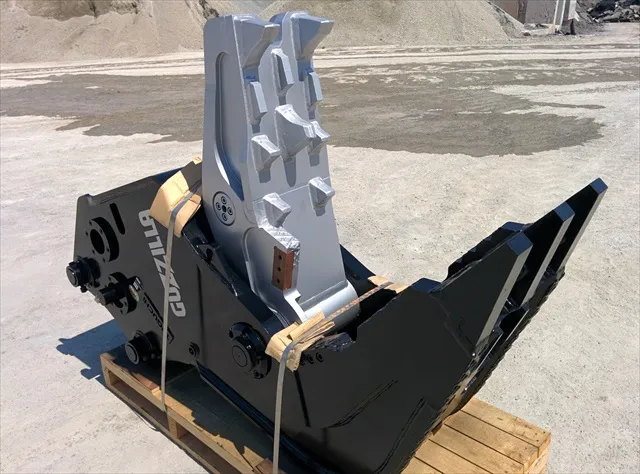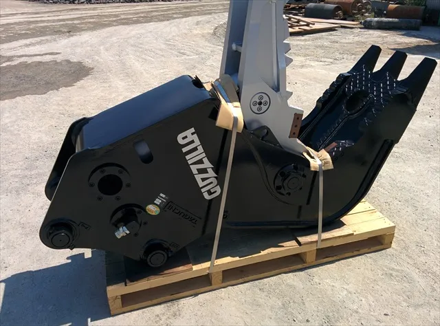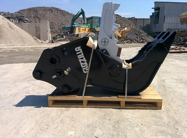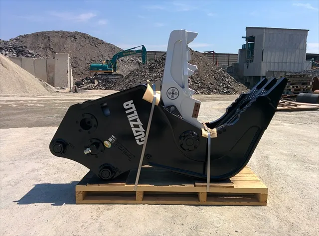 新規車両重機 2015.05.25 ガジラ購入 ガジラ購入しました 重機に取り付けるアタッチメント「ガジラ」購入しました。 弊社に持ち込まれるコンクリートがらをこの「ガジラ」で小割りします。 油圧の力で、ドンドン割っていきます。