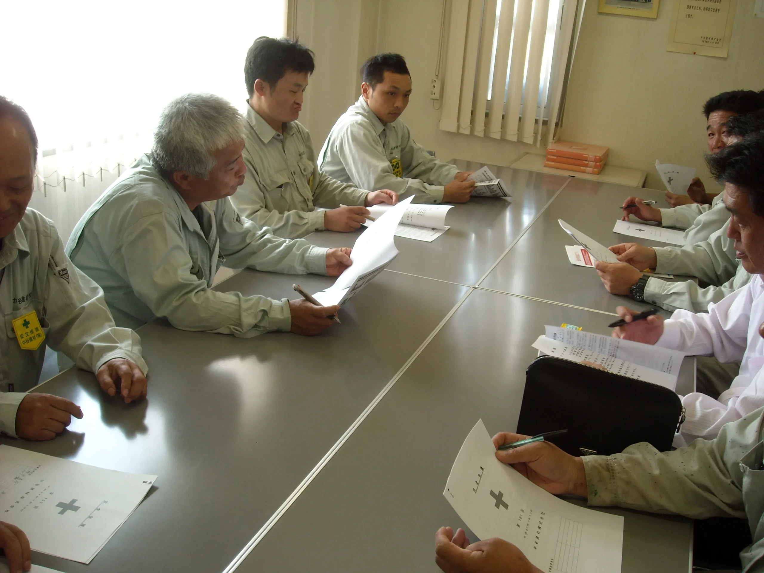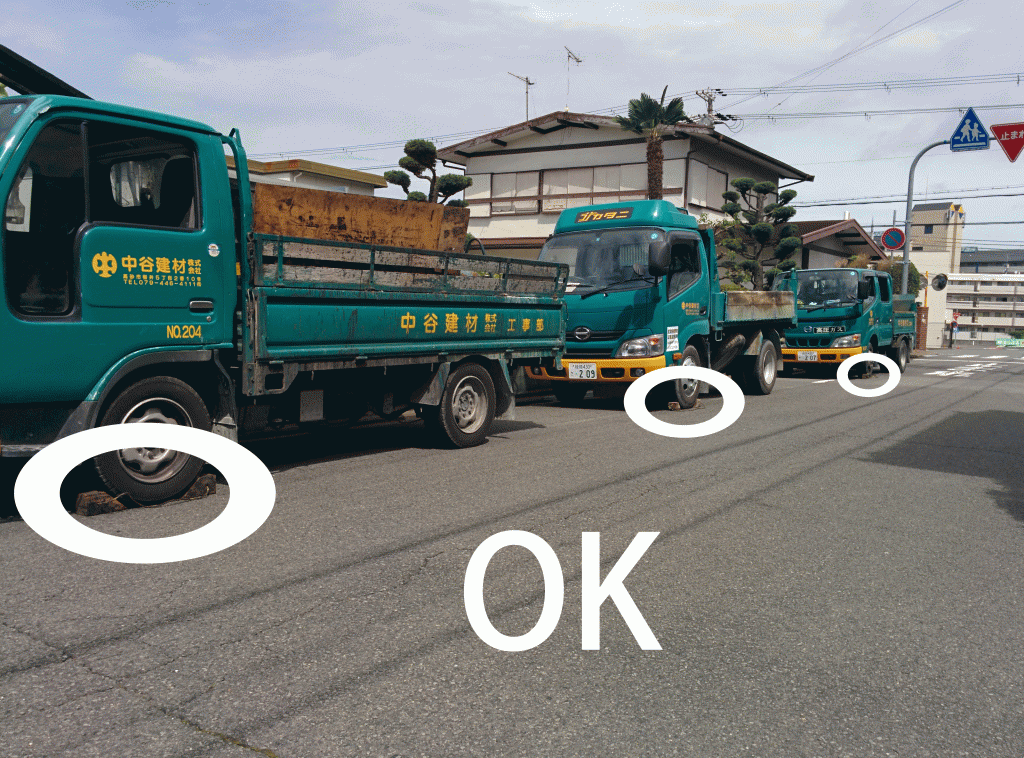 安全パトロール 安全会議を実施しました。 現場での駐車時 車止めできています。