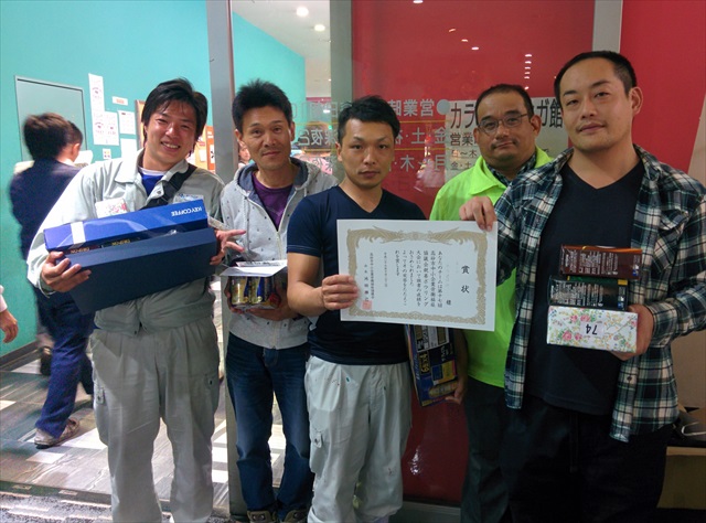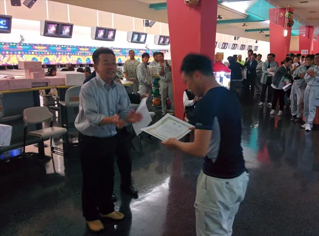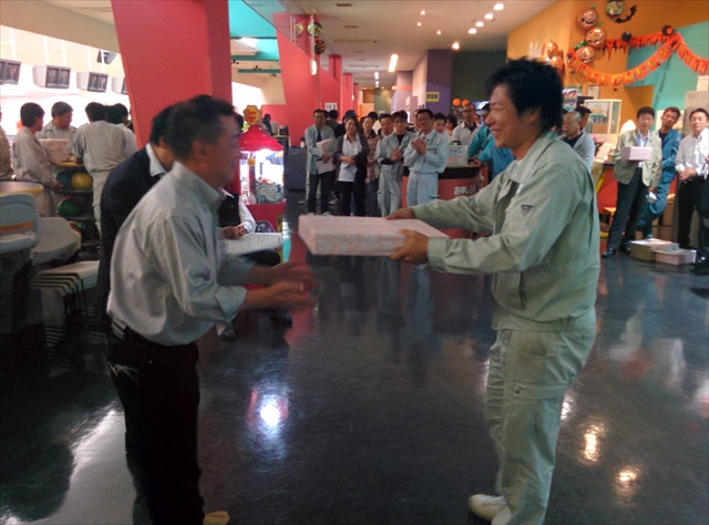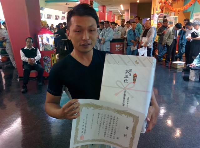 ブログ 2015.10.23 ボーリング大会 3位入賞 高砂市中小企業労働福祉協議会開催のボーリング大会で中谷建材株式会社が3位入賞 高砂市内の企業が集まってボーリング大会が開催されました。 毎年この時期に開催されています。今年も100名を超える参加者で賑わっていました。 弊社からも5名参加し運良く3位に入賞することができました。 たくさんの商品を持ち帰る事ができました。 来年もいい成績を期待します。