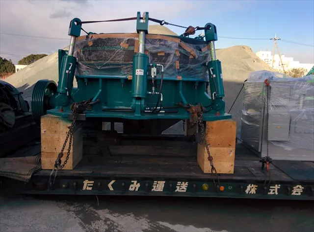 新規車両重機 2016.01.27 砕石クラッシャ リプレース コトブキ技研工業株式会社製 KEMCO KP-1500C 砕石プラント クラッシャ リプレース 弊社砕石プラントのクラッシャをリプレースしました。 採用したのはコトブキ技研工業株式会社製の「KP-1500C」です。 電気工事一式:株式会社ヨドデン様 1:破砕前に回転均等供給装置により 正転 逆転 のコントロールを行いマントルコンケーブを均等に摩耗することができます。(偏摩耗防止) 2: 油圧を使用することにより、マントルコンケーブ摩耗時の出口セットを容易に行なうことができます。 3: 潤滑油の油温は「ラジエター」で下げています。(空冷)