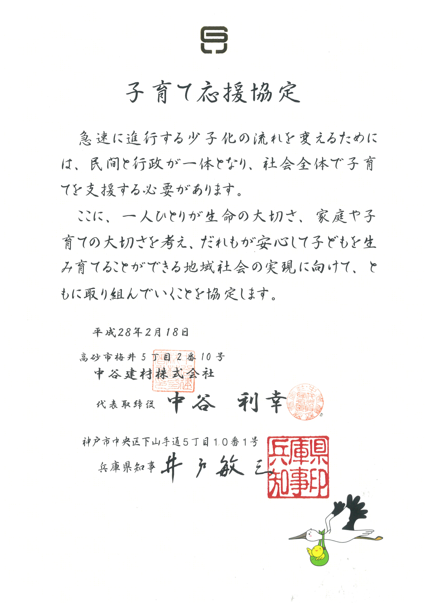 兵庫県子育て応援協定 兵庫県締結企業はこちら(PDF)弊社 平成27年度締結企業 播磨地域29社