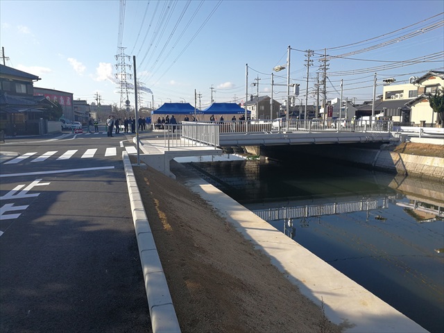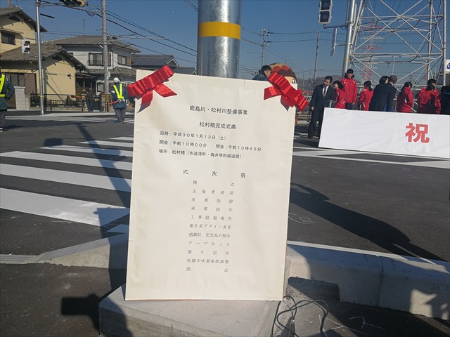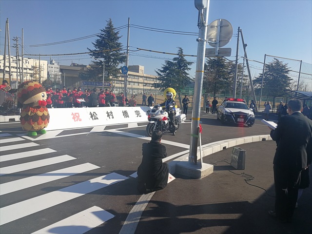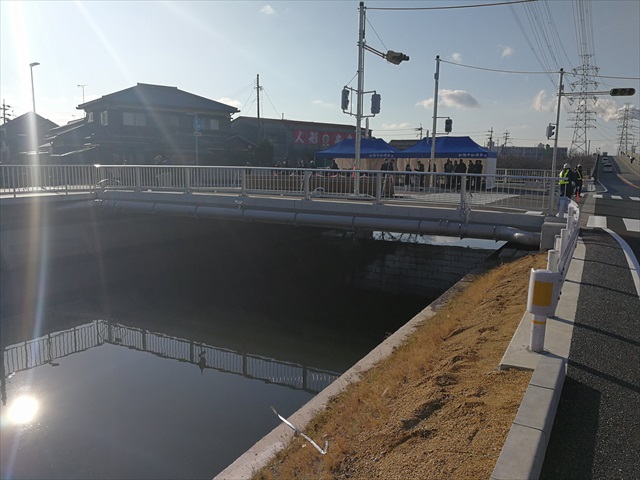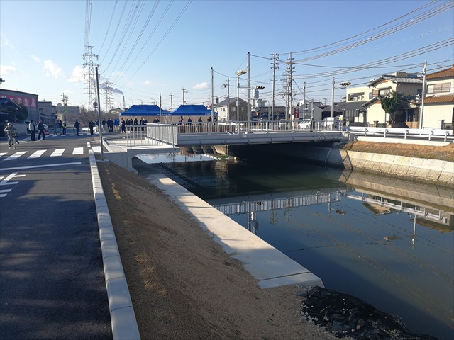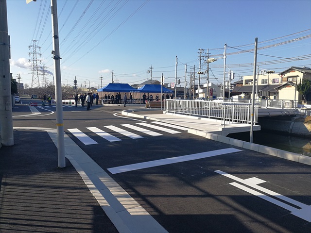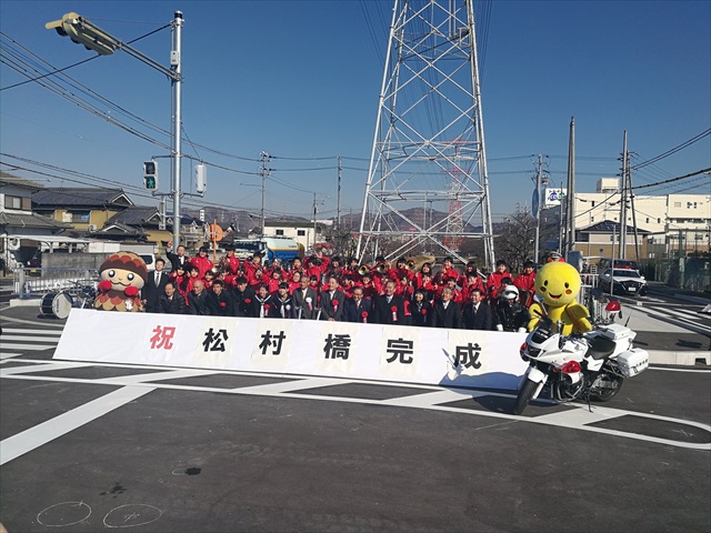 舗装工事 松村橋完成式典 中谷建材株式会社施工道路 開通記念式典 高砂市では平成23年9月 台風12号で浸水被害が発生しました。 この被害対策のため市内の治水対策事業を行っています。 この「松村橋」も流水能力をあげ、流量を2倍以上にし周辺の道路部の施工を中谷建材株式会社が行いました。 松村橋開通式典が行われ、地元の松陽中学校吹奏楽部の演奏や関係者などで開通となりました。 更新日:2026.01.20