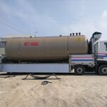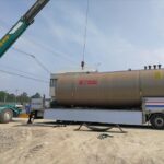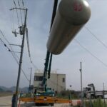 中谷建材株式会社が所有するダンプトラックやショベル、ユンボなどの重機機械などに給油する自家給油所(ガソリンスタンド)に31キロリットル(31,000リットル)の地下タンクを設置しました。