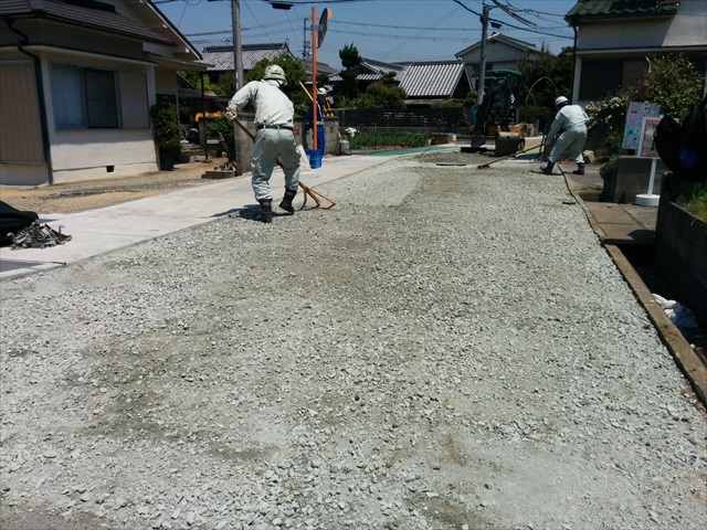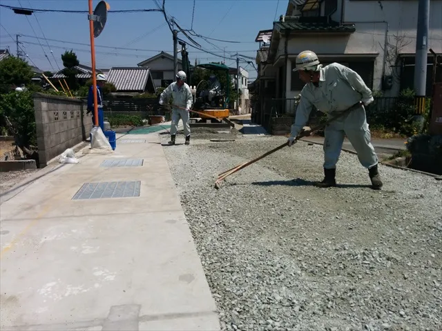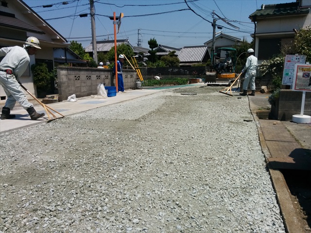 土木工事 明石市二見町東二見 舗装工事 アスファルト舗装前作業 アスファルト舗装を行う前に路盤を施工します。 路盤もしっかり施工しないと仕上がりに影響します。 施工部分だけではなく 施工部分の水平を確認するだけでなく、水の流れはどうなるか、水路に水が流れるように勾配をつけなくてはいけないのか・・などその周りの既存部分との取りあいも確認しています。 更新日:2026.01.22