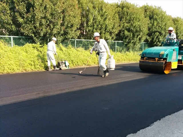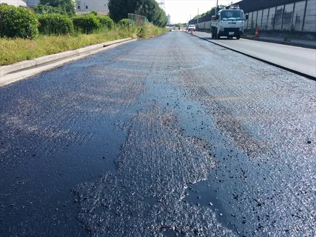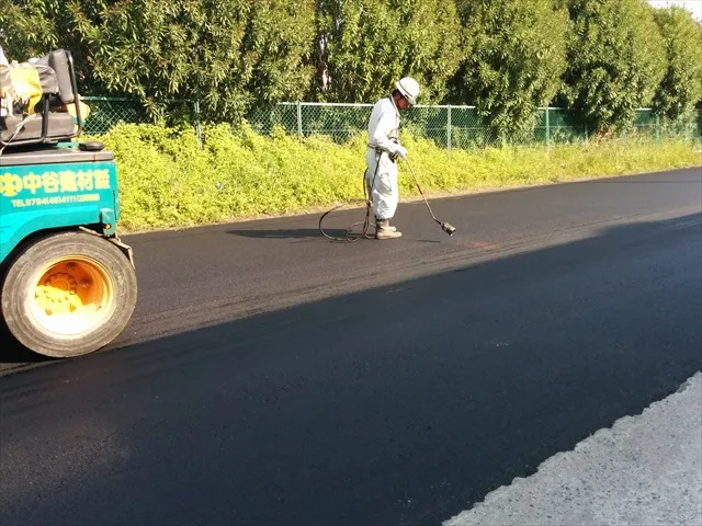 アスファルト舗装をする前に、「アスファルト乳剤」を道路に施工する場合があります。