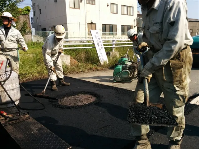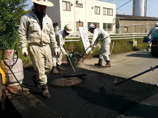 アスファルト乳剤はアスファルトの接着性を上げる役目もあります。(アスファルト乳剤の詳しい説明はこちら)
