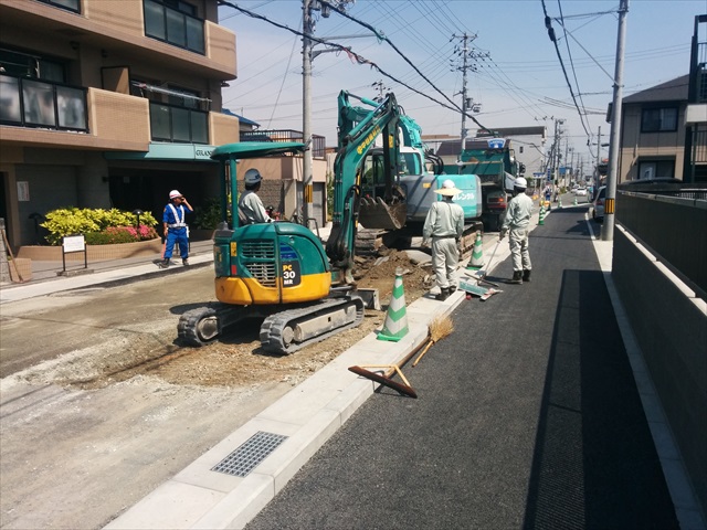 舗装工事 加古川市西神吉町岸 アスファルト舗装除去作業 片側ずつ施工 2車線道路をアスファルト舗装する場合、通行止めにならないように1車線ずつ施工します。 まずはじめに、施工場所のアスファルトを除去します。 更新日:2026.01.22