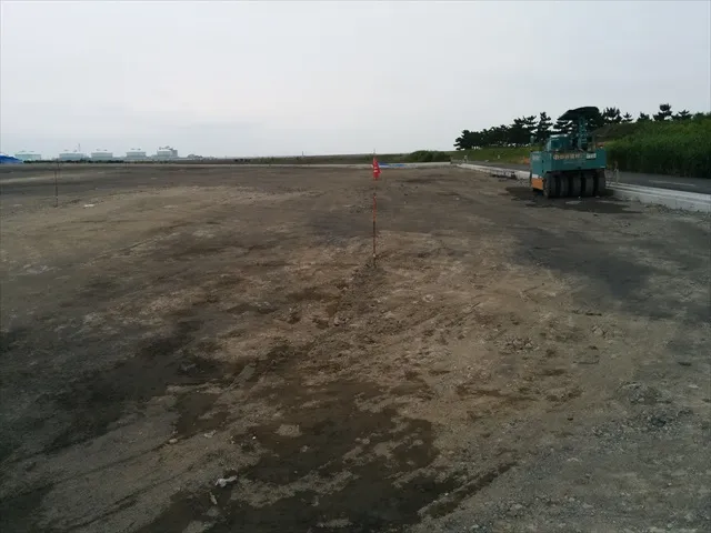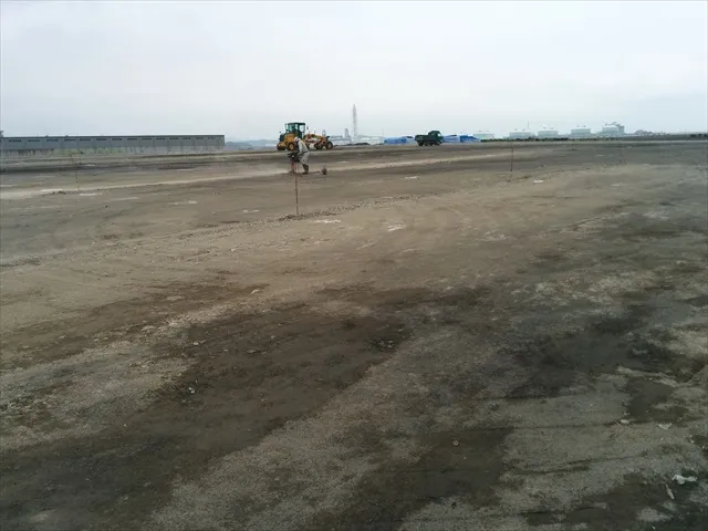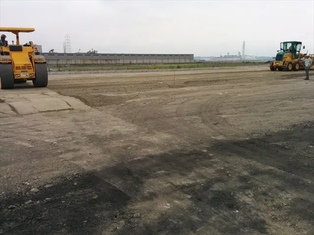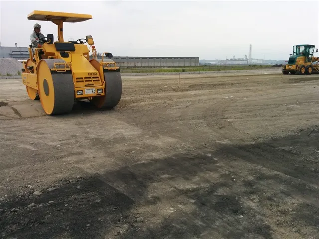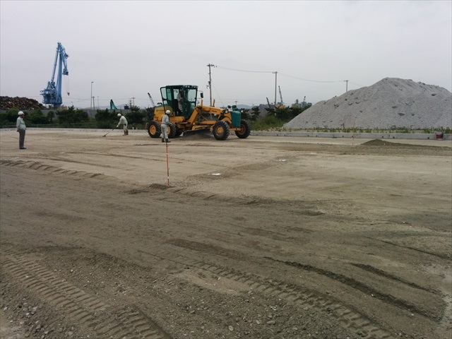 土木工事 姫路市中島埠頭飾磨舗装工事 大型舗装工事施行中 姫路市飾磨区中島埠頭で大型の舗装工事を開始しました。 現在、路盤整正しています。 弊社所有のモーターグレーダーが活躍しています。 更新日:2026.01.22