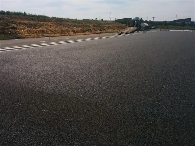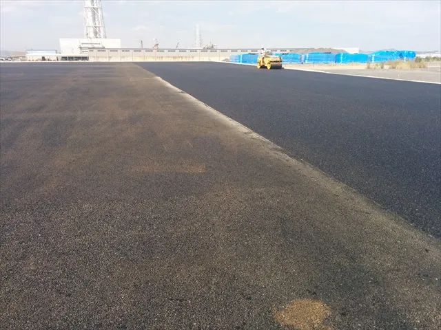 舗装工事 姫路市飾磨区中島埠頭舗装工事完成 中島埠頭舗装工事姫路市飾磨区完成。 舗装工事完成しました。 全部で3層のアスファルト舗装です。 暑い中、集中力を切らさずに仕事していました。 ご苦労様でした。 更新日:2026.01.22