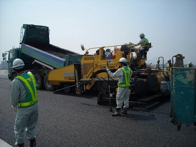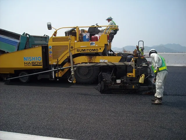 舗装工事 加古川小野線東播磨南北道路 舗装工事 2013-07-26舗装画像 加古川小野線東播磨南北道路 舗装工事 2013-07-26舗装画像 1層目の舗装は完了し、2層目のアスファルト合材を施工しています。 2層目施工画像。弊社で製造されたアスファルト合材を使用し、重機と人の技術で施工していきます。 更新日:2026.01.22